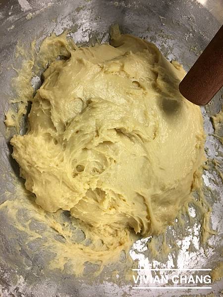 所以桌面上清潔好,灑點高筋粉將麵糰拿出來避免沾黏