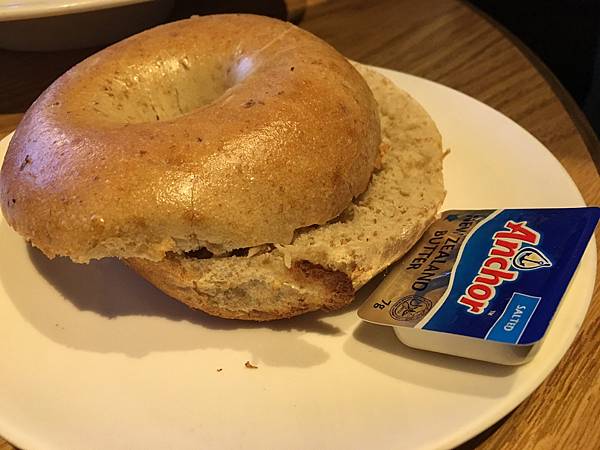 都有附一塊鹽味安佳奶油,但我們都塗奶油起司醬