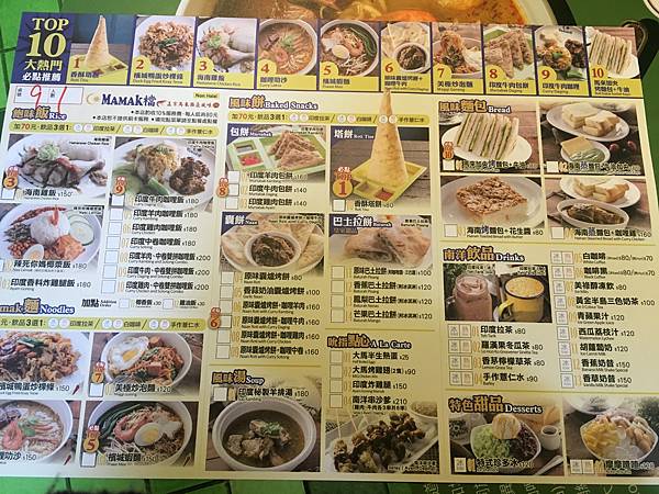 炒泡麵、海南雞飯、炒粿條、咖哩配拉餅、咖椰土司、咖哩、摩摩渣渣