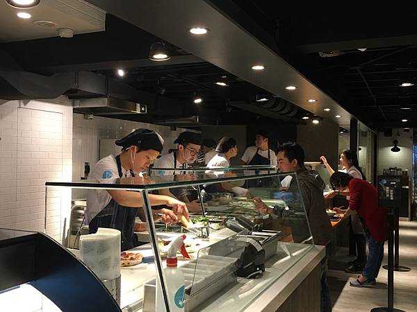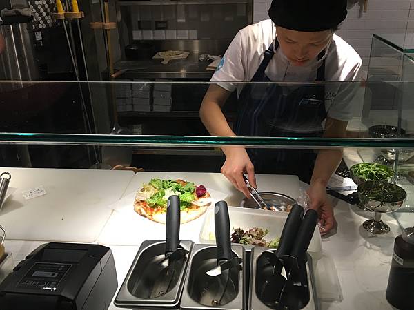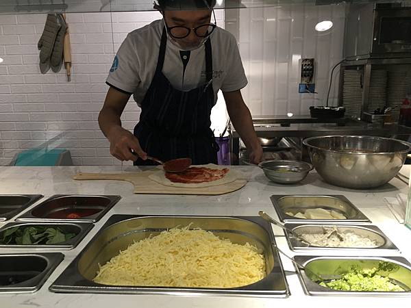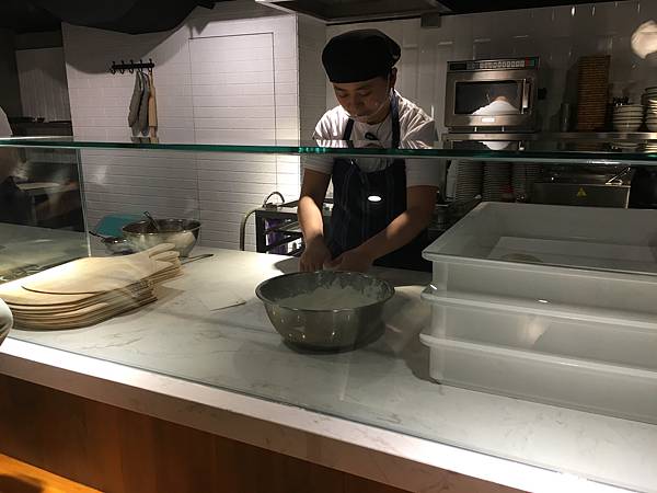 完全透明的廚房,可以欣賞店員做比薩
