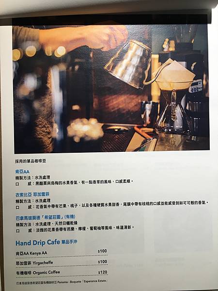 他們家咖啡是手沖咖啡,清楚的註明咖啡哪兒來的