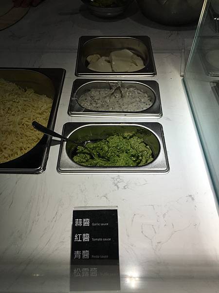 這邊放著各式比薩抹醬
